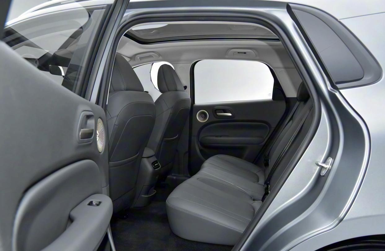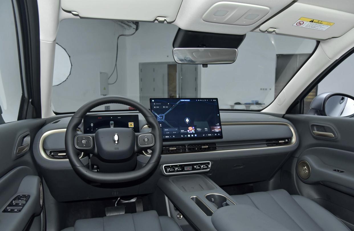 欧拉5整体采用了湛蓝色+米白色的撞色设计,并在多处加入镀铬元素进行点缀,增添几分复古气息。座舱采用大面积软性材质、米白色真皮材质和翻毛皮材质的交替运用,层次感鲜明,氛围感也很温馨。车内空间表现中规中矩,行李箱容积228-858L,最多能放下3个24英寸的拉杆箱和一些小书包之类的物品。中控台配备了双幅式多功能方向盘,两侧加入了触摸感应式按键,中间配备了欧拉车标,方向盘造型与新款坦克300有着异曲同工之妙。科技感方面,该车配备了悬浮式的无边框彩色仪表、悬浮式的中控液晶大屏,车机采用长城自己的CoffeeOS,通过屏幕能够看到很多常用的功能和App,满足日常使用肯定是不在话下。后排还配备了3.2L的冷暖储物箱。
