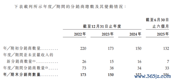 此外,蔓迪国际近年来还面临着分销商数量锐减的情形。招股书显示,蔓迪国际的大部分产品销售给了分销商,2022年至2024年及今年上半年,公司向分销商销售产生的收入分别占产品销售总收入的96.4%、91.2%、87.9%、80.6%;截至同期期末,公司分销商数量分别为173家、150家、132家、106家,呈现逐年下降趋势。