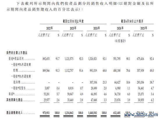 2024年,蔓迪国际推出第二代产品打造新增长引擎,即蔓迪®5%米诺地尔泡沫剂。今年上半年,该款产品销售额达2.83亿元,较去年同期0.65亿元的销售额大幅增长,收入占比也升至38.7%。