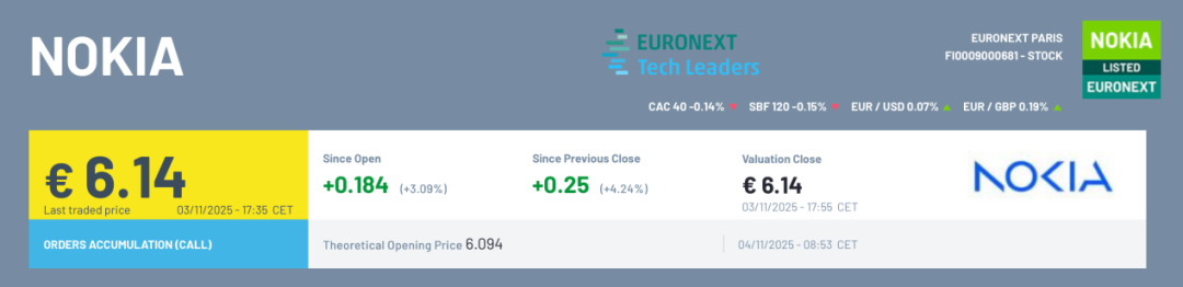诺基亚表示,公司董事会已决定提交申请,将其股票(ISIN:FI0009000681)从巴黎泛欧证券交易所(Euronext Paris)摘牌。