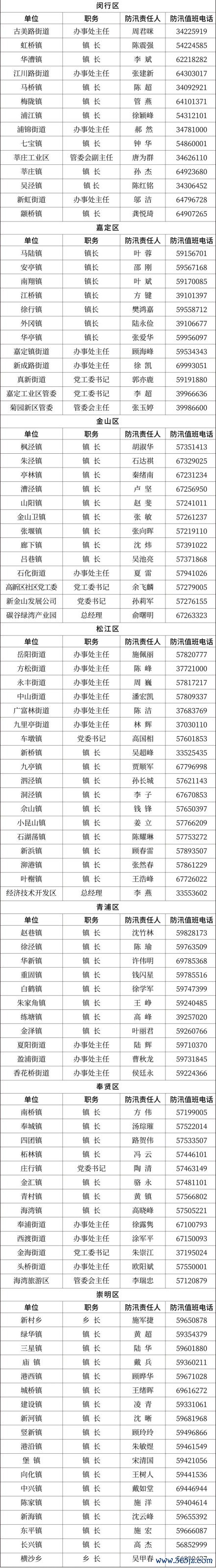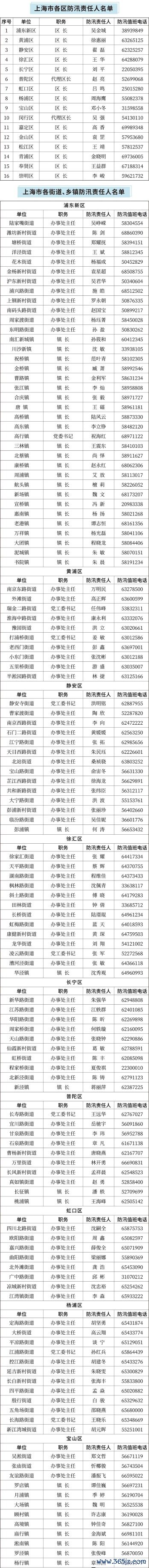 上海各级政府行政首长有了新身份。今天(1日),上海市防汛指挥部发布公告策略操盘,进一步落实各级防汛责任制,根据《中华人民共和国防洪法》《中华人民共和国防汛条例》《上海市防汛条例》关于防汛抗旱工作实行各级人民政府行政首长负责制的规定,将各区、各街道和乡镇防汛负责人名单进行公示。同时公布的还有值班电话。